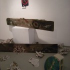 A piece that seemed to sum up Jason’s political views was “UN-UNITED.” This woodcarving shows his thoughts about human existence through a visual timeline. Three planks of wood tell the story of society today in a hieroglyphic fashion. Sparr described his piece to me and said, “I feel that society as a whole is being held down by those leading us. Whether it is through the media or word of mouth, people are being raised to be afraid of each other. Those leading us do not want the people to have unity for we will then have the power. When one tries to bring unity to the people, that person is usually assassinated– this is addressed in my wood carving. The piece ends with a new chapter of a new hope of human civilization after a war ends the prior.” This story, painted simply for all to see, shows the truths of humanity in a way many do not want to recognize.