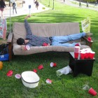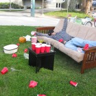 This scene in broad daylight on Wednesday, October 27th at the SRB bike circle, was created by the Life of the Party and Just Call 911 interns as a way to bring attention to what happens all too often on Friday and Saturday nights or mornings in Isla Vista. The reenactment of a party gone wild was an attempt by the interns of these campaigns to highlight the symptoms of alcohol poisoning, and what people should do in that situation.