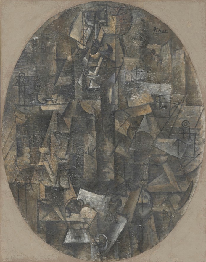 The SBMA’s curator designed this exhibit to look just as Picasso and Braque’s studios had looked at the time the works were created. Adding to the excitement, if you bring a Driver’s License or ID, at the entering kiosk you can trade your ID in for an iPad while you look at the exhibit. Among many other features, the iPad has a feature called “Solve” where one of the works is broken into pieces and you can move and adjust them to try and find the images in the paintings. There is an elusive quality to the complex and innovative invention of Cubism that continues to prod painters, art lovers and thinkers to join in contemplating and attempting to put the pieces together. However, the mysterious qualities of Cubism could make any person shy away without a little knowledge on how to approach it.