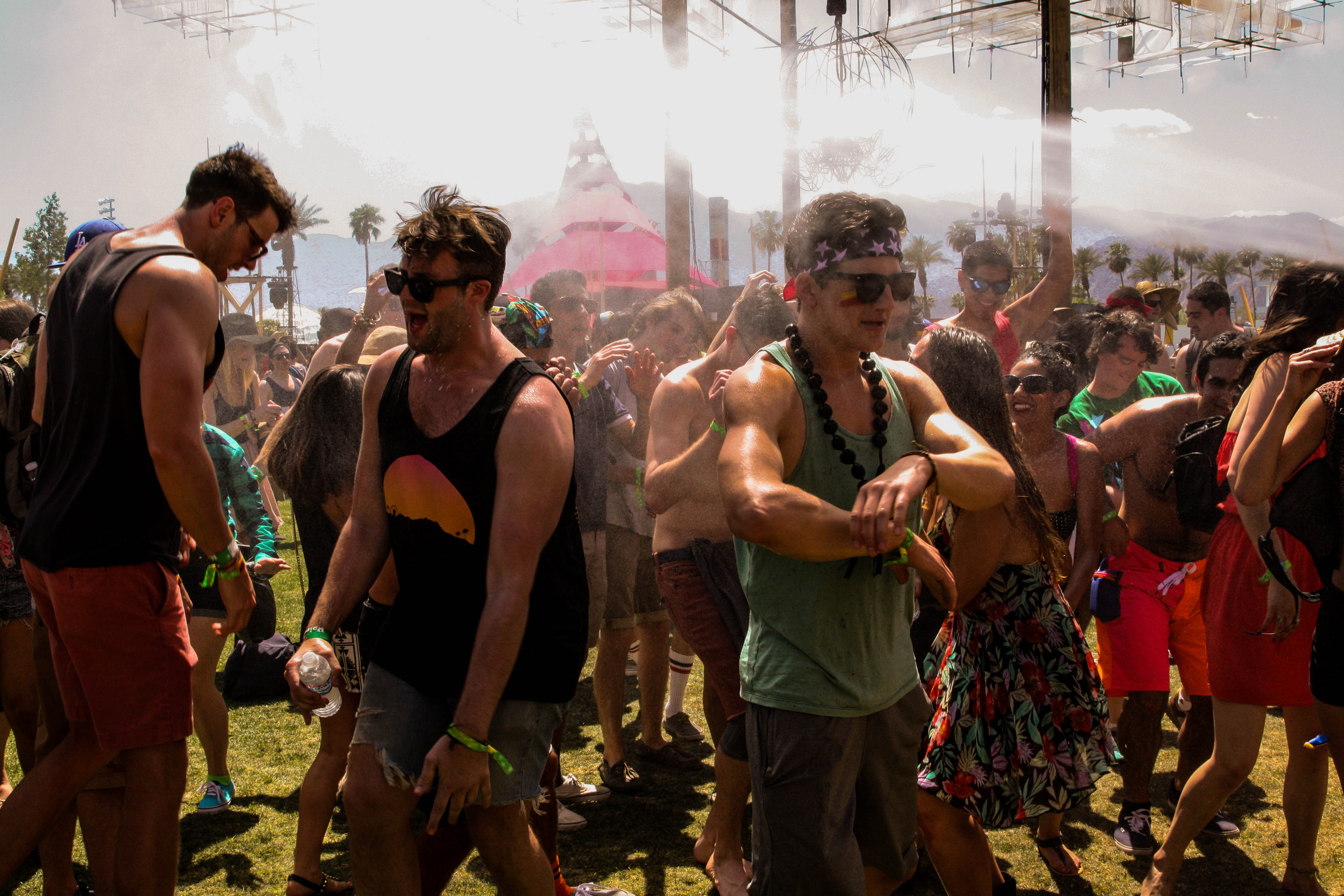 Festival-goers get cooled off with water while dancing at the Do Lab