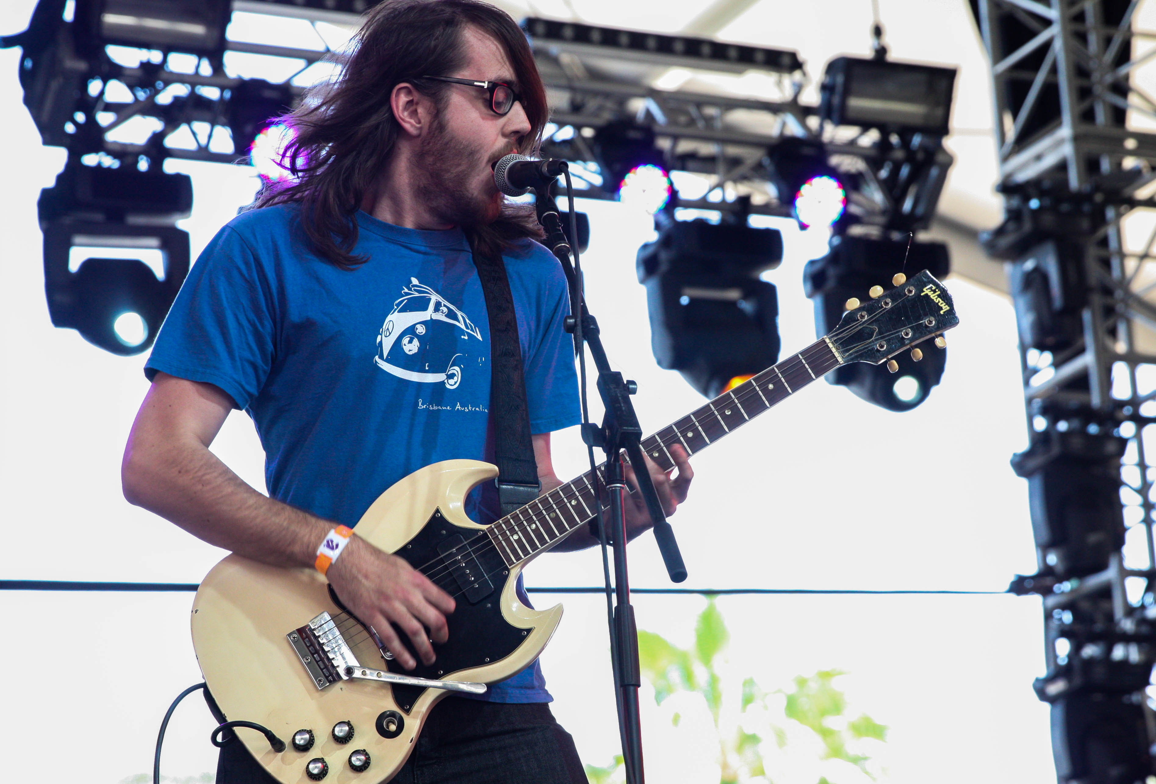 I arrived earlier than the previous two days to catch Deap Vally’s 12:00 set, which kicked off day three at the Mojave tent. The rock duo, which is comprised of Lindsey Troy and Julie Evans, gave a performance that was a breath of fresh air and feminine empowerment. Singer and guitarist Troy, who hails from San Diego, doesn’t evoke hard rock vibes based solely on her appearance – her petite frame and floral sunglasses posed a dichotomous relationship to the resonant, growling voice that hit the crowd like a freight train when she began singing. Taking command of the stage and the power of her vocal abilities, Troy gave a phenomenal performance that was matched by Evans’ drumming skills and vigor. Evans, donning a metallic gold dress that set off her wild red head of curls, complemented Troy’s singing and guitar playing with intense rhythms that, at one point, caused her to knock over one of her cymbals. The duo played songs off of their debut album, which comes out this summer, such as “Walk of Shame” and “Gonna Make My Own Money.” Based off of their confidence, natural chemistry, and sheer skills, I predict that Deap Vally’s going to go far. Keep an eye out for this hard-hitting pair, and don’t let their good looks distract you from their well-developed and infectious sound.