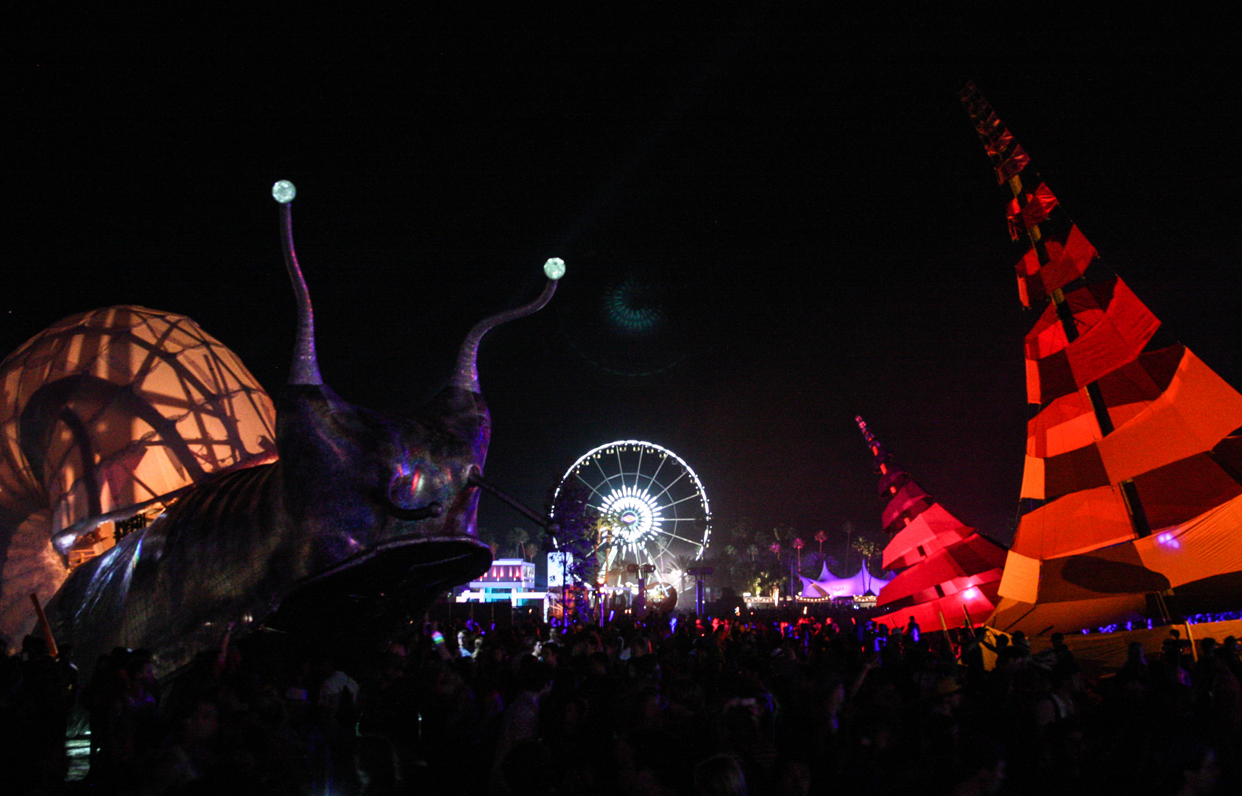 The past three days have been a complete blur, as if I set a camera on long exposure and carried it around as I ran between shows, the campsite, and amongst the aesthetically novel art installations scattered throughout the festival grounds. By Sunday, the weight of the weekend seemed to take its toll not only on me, but other festivalgoers as well. Coachella is a cornucopia of aural, visual, physical, and emotional stimuli, and the crowds seemed mellowed out not only as a result of accumulated fatigue, but also from the heaviness of the dust that hung in the surprisingly chilly air. However, the decrease in temperature and energy didn’t appear to translate to the level of enthusiasm for the day’s lineup.