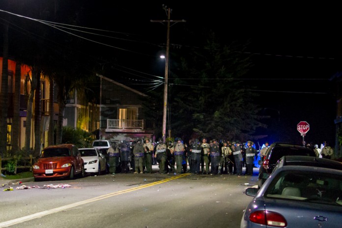So I would like to ask again: why do riots occur? Again, though I am not qualified to address the specific causes of this particular riot, I would like to suggest that riots generally occur when a situation is perceived both as (a) intolerable, and (b) impossible to respond to in any other way. Riots are not the reaction of spoiled children. They are a last-resort expression of rage that cannot be expressed in any other way. As with so many other situations, the grievous error that I believe that the University administration, at multiple levels, has made in regard to the Deltopia tradition (and, earlier, to the Floatopia tradition) is to create a bureaucratic university culture in which students are not welcome to participate in meaningful ways in decisions which affect them. In which students have no real voice, though a very real stake, in decisions that are made by administrators. In which governance by fiat, rather than through dialogue and collaboration, is the norm. In which no one in the University administration seems to care why the students would want to have a large-scale party in the first place, but finds it entirely appropriate to use force to control what happens off campus in order to curate the University’s image for the world. In which conversations on social networks are silently monitored and public beaches are closed in response to any “potential for a ‘Floatopia’ type event to occur” (as UCSB police chief Dustin Olson said in his emails on the subject early in April of 2012 and 2013). In which the University works fist-in-glove with off-campus police to enforce its will instead of talking to the students for whose benefit it exists in the first place. In which the shutting down of off-campus parties is seen as so important to the curation of the University’s image that it will be effected by any means necessary, including rubber bullets and tear gas. In which, as I am so disappointed to find Abboud and Scarlet asserting in their email, we are told that what we most need to consider is not real educational issues, or the question of what role education serves in our society, but rather the “image of IV.”