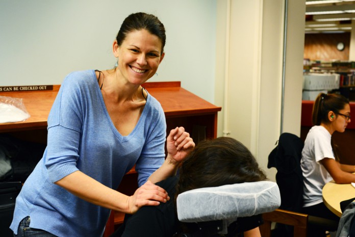Feeling stressed? Does your back crumple under the weight of all those textbooks in your bag? Need a little relief from the stress of midterms, work, and athletics? Not to worry. A solution awaits you right on campus–and her name is Terri.