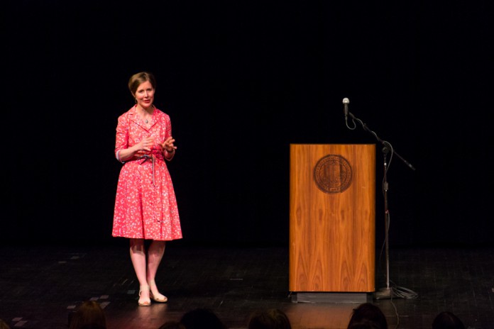 Ann Patchett, an author and owner of an independent bookstore in Nashville, spoke at Campbell Hall on Tuesday, May 6, about her career and business.