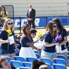Nearly all of the 17,000 seats in Harder Stadium were filled, and the expanse of attendees even spread to the grassy soccer field surrounding the central media stage. Flanking the crowd, the American flag fluttered in the breeze at half-mast.
