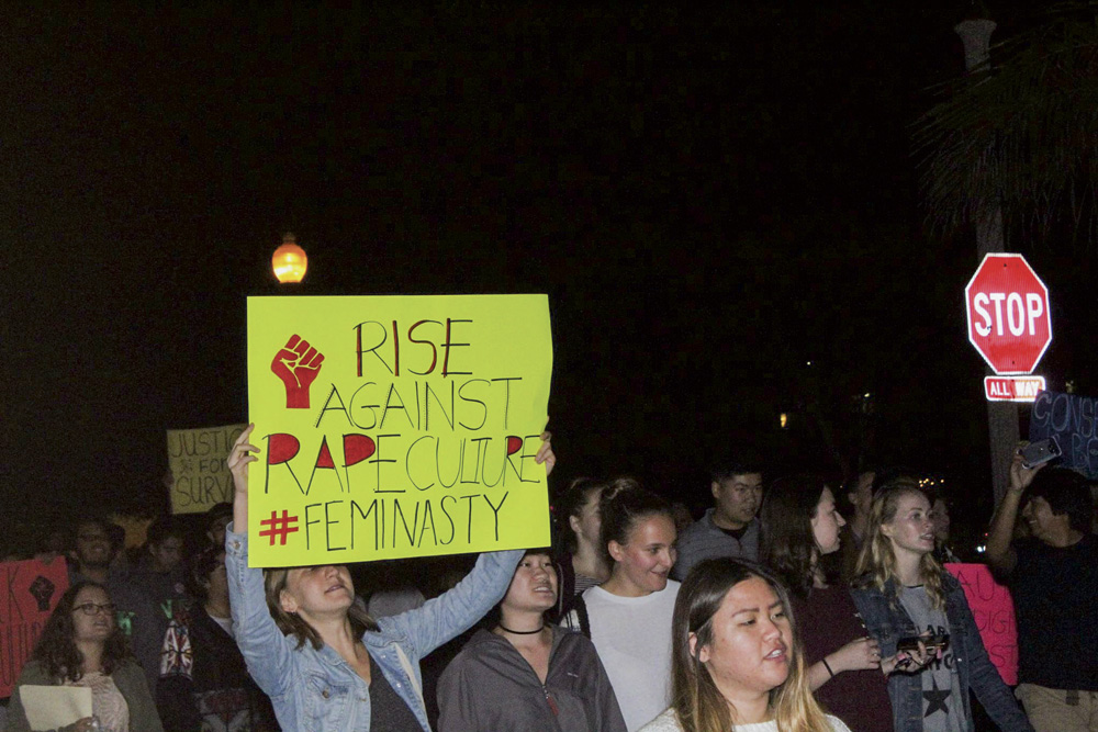 Balconies along Del Playa filled with onlookers Friday night as fed-up students and community members took to the streets and turned heads for a cause in what student organizers called a “Rally Against Rape Culture.”