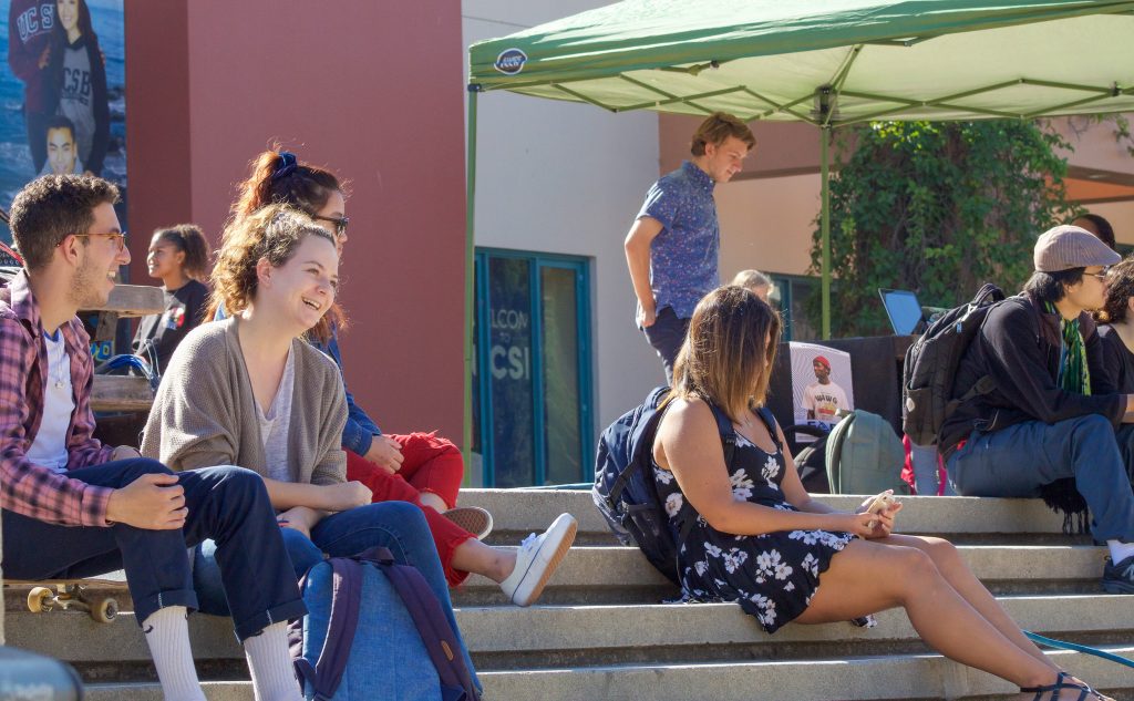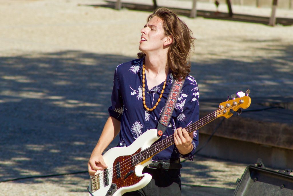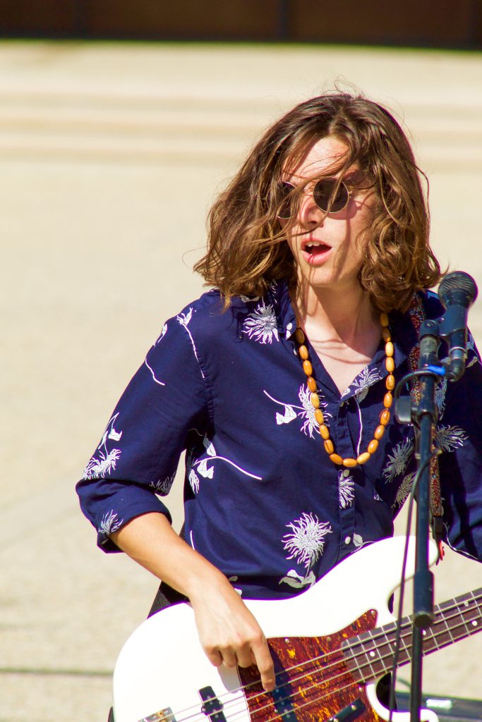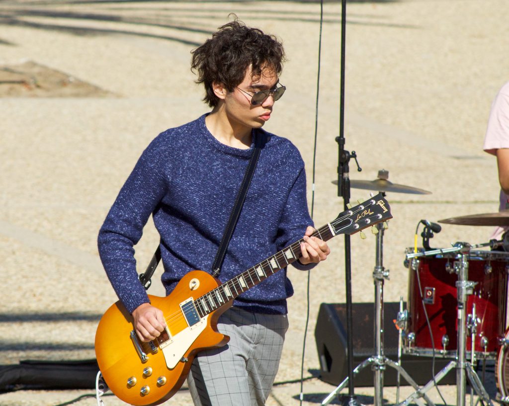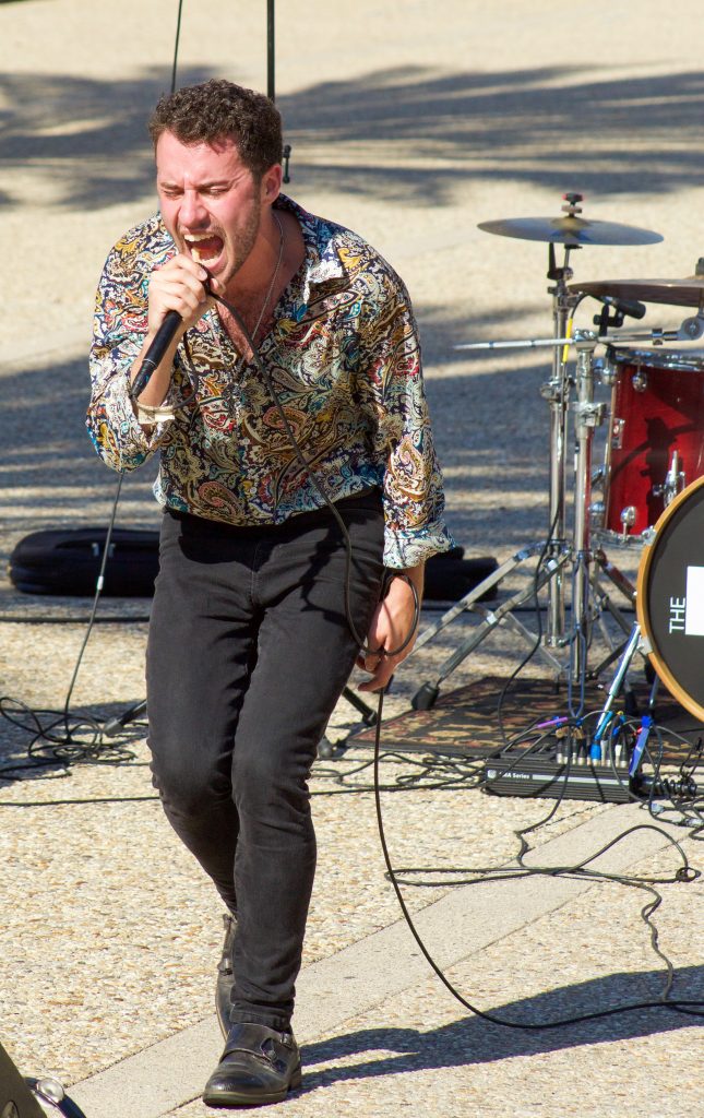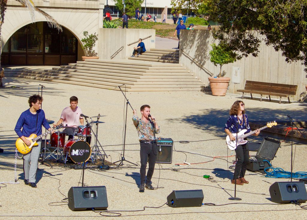 The up-and-coming band, The Modern Man performed at UCSB’s Storke Tower on Thursday at noon. The young band incorporated rock and alternative sounds into their own upbeat style. Students gathered on the stairs to enjoy the music between classes, and for a lunch break. The band gave smiles and free pins to students after their show, hoping they gained new followers.