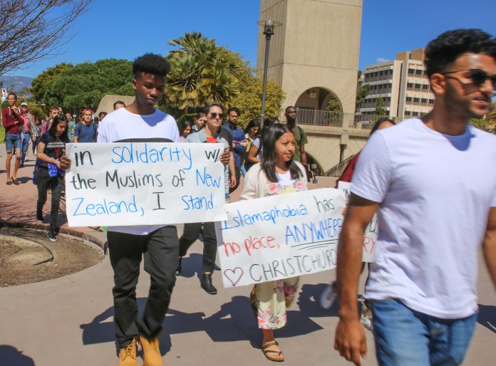 The UCSB Muslim Student Association (MSA) held a vigil to commemorate the lives that were lost in the Christchurch Mosque shootings and to honor the affected families at Storke Tower on Monday afternoon. Several speakers from MSA as well as faculty members, including Chancellor Yang, conveyed their condolences and encouraged the community to remain strong and brave.