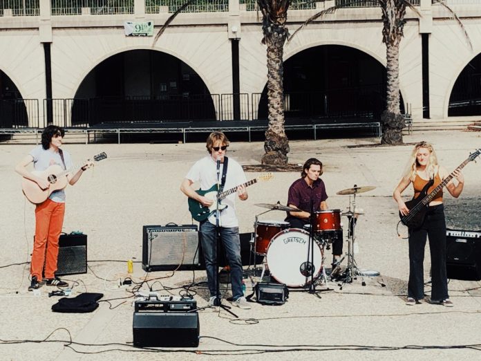 Aqua Stallion’s talent lies in their ability to combine their signature psychedelic and garage rock sound with a Southern California twist. Audrey Meiman, bassist and singer, has a unique way of delivering whimsical lines in “Shark Song,” detailing how a shark bit off “[his] toes” in the ocean. Audiences chuckled throughout the song, a nod to the group’s grasp on ocean culture in I.V. An instant sense of connection formed between the band and their listeners