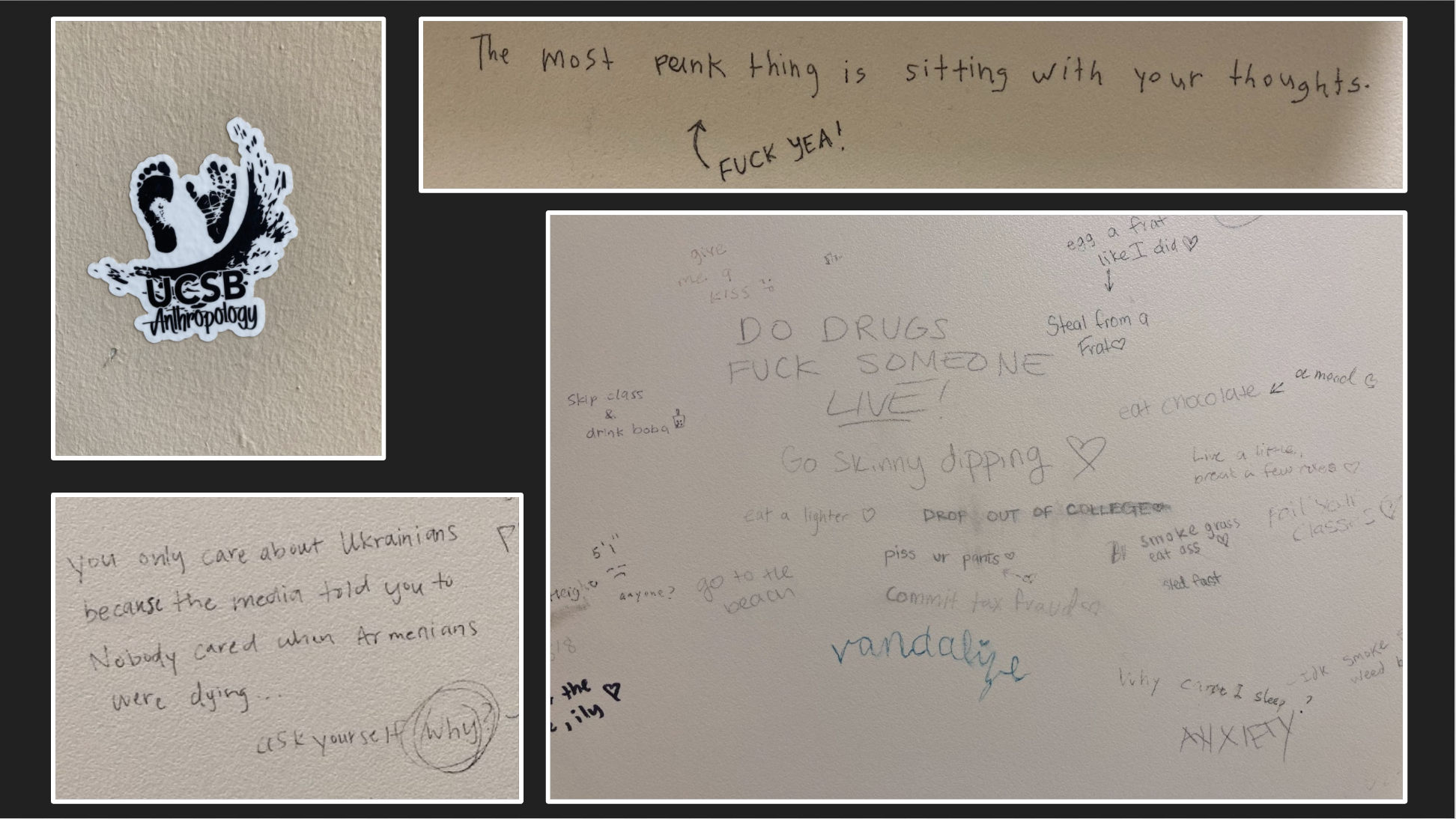 FeaturesCampusPhoto In Photos: A Collection of Graffiti Throughout UCSB’s Campus By Sammy Munoz - May 4, 2022 0 11620 FacebookTwitterPinterestWhatsApp Photos by Kylie Malone
