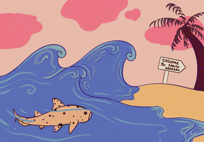 Many of these oceanic travelers pass through the waters just off of UC Santa Barbara (UCSB) and Isla Vista (I.V.), especially different species of whales and sharks as they pursue food and warmer water. One of our most locally well-known visitors are leopard sharks, which are not aggressive towards humans and gather in large numbers to shore starting in the summer months, sticking around from June until sometime in December. If you head to Devereux Beach, just slightly west of campus and I.V., there is a decent chance you’ll be able to see these small sharks among the waves just offshore. These are the same sharks you probably petted in a touch tank in an aquarium as a child! However, while leopard sharks are very comfortable around humans and are considered harmless, it is still important to keep a respectful distance from any and all wild animals, as human interaction can be harmful to their natural behaviors and patterns.