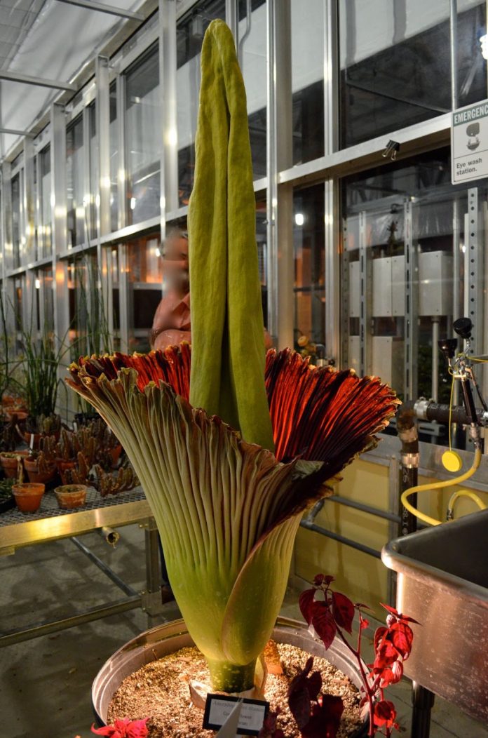 Corpse flower (Titan Arum) bloom at the greenhouse in 2013. Photo courtesy of Cameron Hannah-Bick.