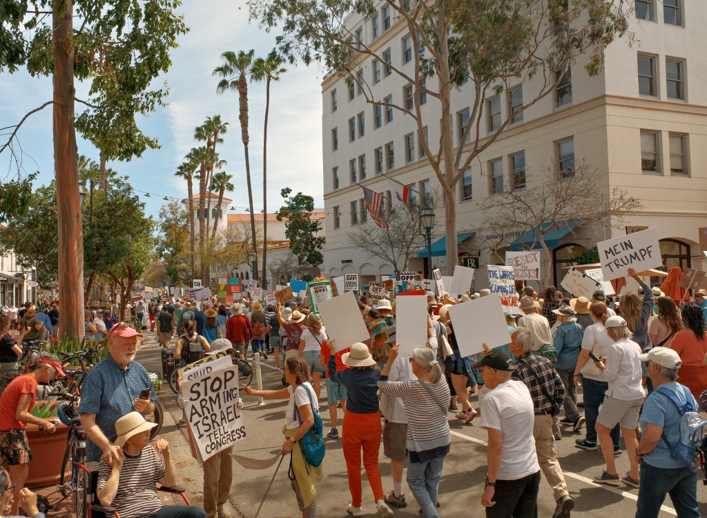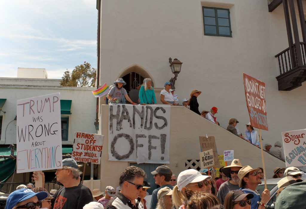 Photo Hands Off Protest By The Bottom Line - April 18, 2025 0 55 FacebookTwitterPinterestWhatsApp Theo May Photo Editor Activists in downtown Santa Barbara protested the Trump administration and cuts by the Department of Government Efficiency.